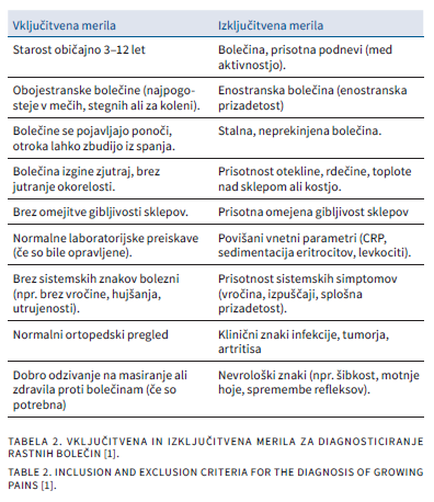 Mišično-skeletne bolečine so eden najpogostejših razlogov za obisk otrok pri pediatru. Čeprav so vzroki pogosto benigni, kot so rastne bolečine ali preobremenitveni sindromi, pa se lahko za podobnimi simptomi skrivajo tudi resne ortopedske bolezni, kot so Perthesova bolezen, zdrs glave stegnenice ali novotvorbe. Članek prikazuje diagnostični pristop k otroku z bolečinami v sklepih ter podrobneje obravnava najpogostejše ortopedske entitete, pri čemer poudarja pomen prepoznavanja t.i. rdečih zastavic in pravočasnega sodelovanja med pediatrom in ortopedom.