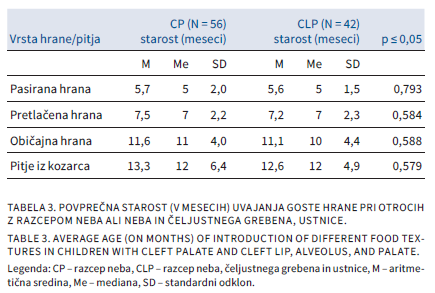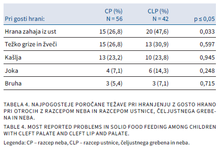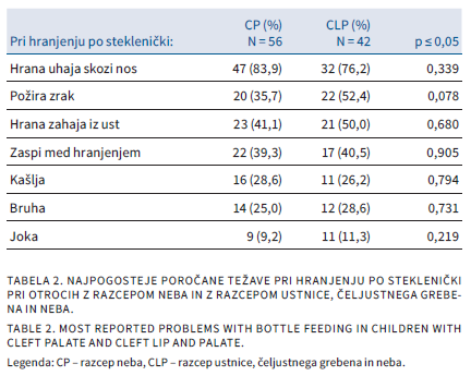 MOTNJE VEŠČINE HRANJENJA PRI OTROCIH Z RAZCEPOM NEBA Z ALI BREZ RAZCEPA USTNICE