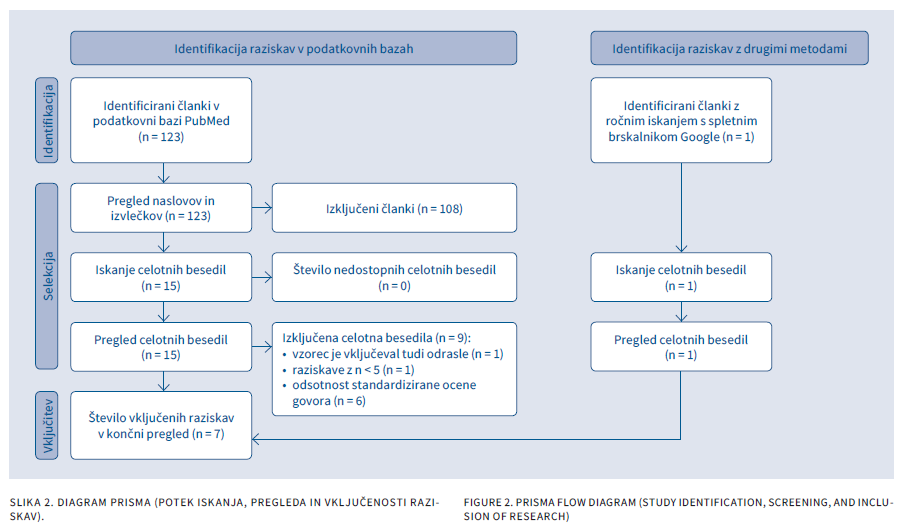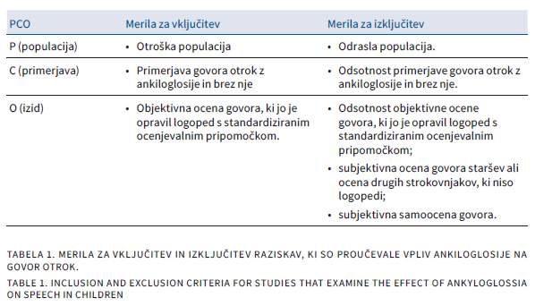 Ankiloglosija in motnje govorjenih glasov (MGG) sta dokaj pogosta pojava v otroški populaciji in se mnogokrat pojavlja-ta skupaj. Obstaja splošno razširjeno prepričanje, da ankiloglosija vpliva na govor in povzroča MGG. Otroci z ankiloglosijo in pridruženimi MGG so pogosto napoteni na kirurški poseg z namenom izboljšati govor. V tem preglednem članku smo primerjali rezultate raziskav, ki so proučevale bodisi vpliv ankiloglosije bodisi učinek kirurškega zdravljenja ankiloglosije na govor otrok. Upoštevali smo le raziskave, v katerih so logopedi opravili objektivno oceno govora s standardiziranimi ocenjevalnimi pripomočki. Na podlagi vnaprej določenih meril za vključitev in izključitev raziskav smo v končni pre-gled vključili 7 raziskav: 3 so merile vpliv ankiloglosije, 4 pa učinek kirurškega zdravljenja ankiloglosije na govor otrok. Vpliv ankiloglosije na govor otrok je potrdila 1 raziskava, pozitiven učinek kirurškega zdravljenja pa 3 raziskave. Glede na rezultate vključenih raziskav ne moremo z gotovostjo potrditi vzročno-posledične povezave med ankiloglosijo in MGG. Čeprav večina vključenih raziskav nakazuje pozitiven učinek kirurškega zdravljenja ankiloglosije na govor otrok, pa so imele te raziskave pomembne omejitve. Za utemeljeno klinično odločanje o kirurškem zdravljenju ankiloglosije z namenom odpraviti MGG so potrebne dodatne, bolje zasnovane raziskave.