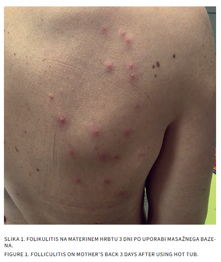 Hot tub folliculitis, or Pseudomonas folliculitis, is a bacterial infection of the hair follicles that occurs after the use of hot tubs and swimming pools. It often presents in outbreaks affecting multiple individuals who have been exposed to the same contaminated water source. We present the case of an 11-year-old boy referred to the Dermatovenereology Clinic because of the sudden onset of non-itchy papular skin eruptions on the body. Subsequent epidemiological history revealed that identical skin changes developed in all family members after using a hot tub.